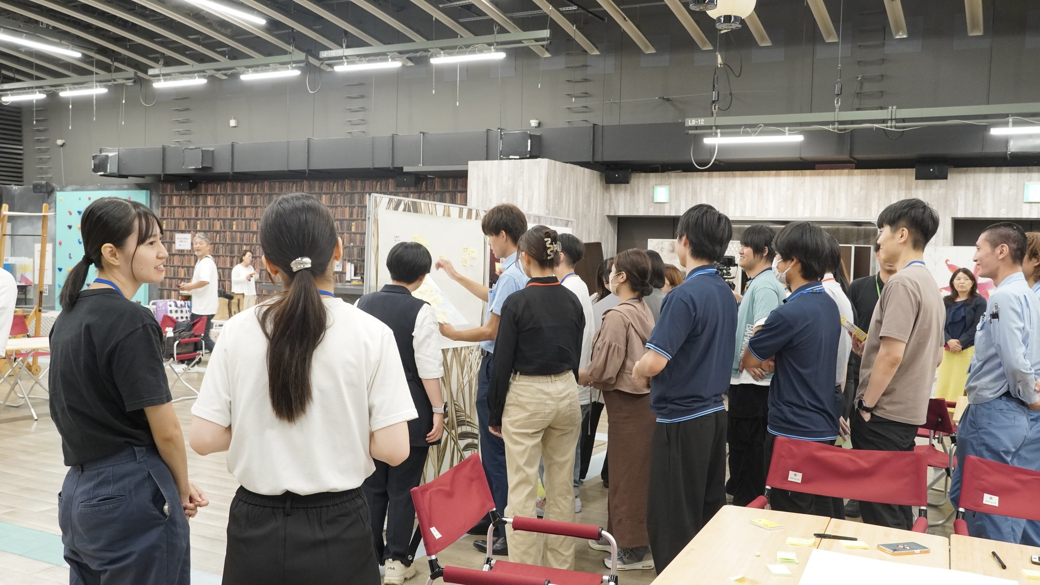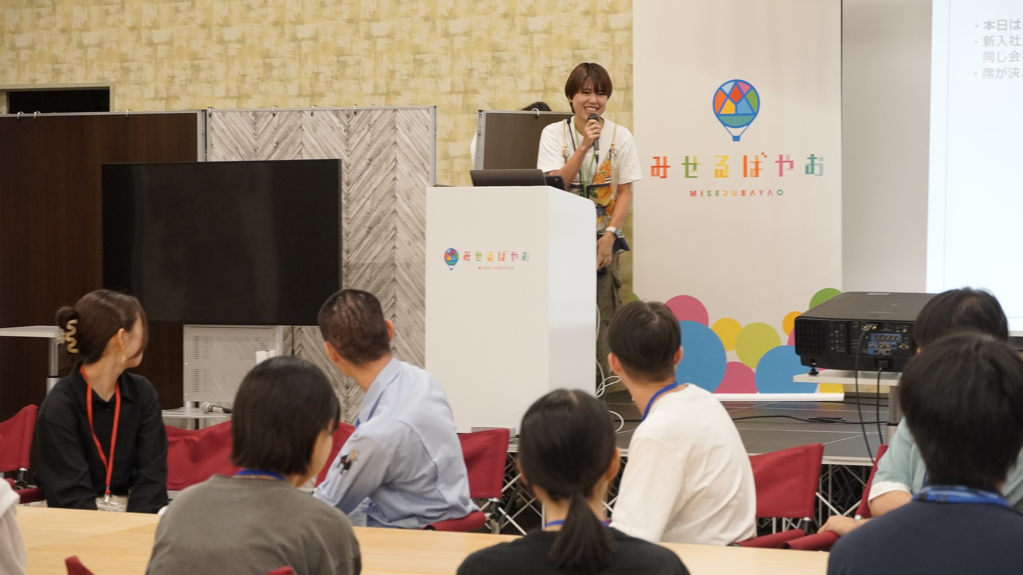 みせるばやおで新入社員歓迎会~交流編~を開催しました。5月に開催した新入社員歓迎会の続きで今回は交流編ということで2回目。今年で2年目の取り組み。 参加企業9社、新入社員の方、先輩社員の方、人事の方、代表総勢約40名で開催しました。